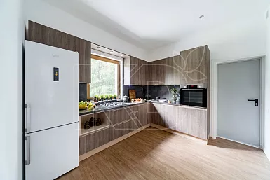 - Начните с удаления всех элементов кухонной мебели. Снимите кухонный гарнитур и опустите его на пол или на специально подготовленные деревянные поддоны.