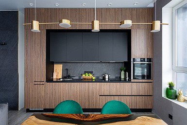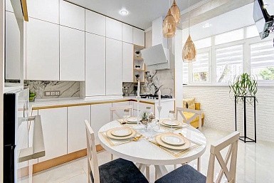 Поклонники уюта и простоты часто выбирают скандинавские кухни. Подобные модели отличаются выверенной геометрией форм, светлыми оттенками и минимальным количеством декора. Особое внимание при создании пространств в стиле сканди уделяется освещению. Интерьеры декорируют подвесными светильниками и спотами, выступающими в качестве осветительных приборов и декоративных элементов одновременно.