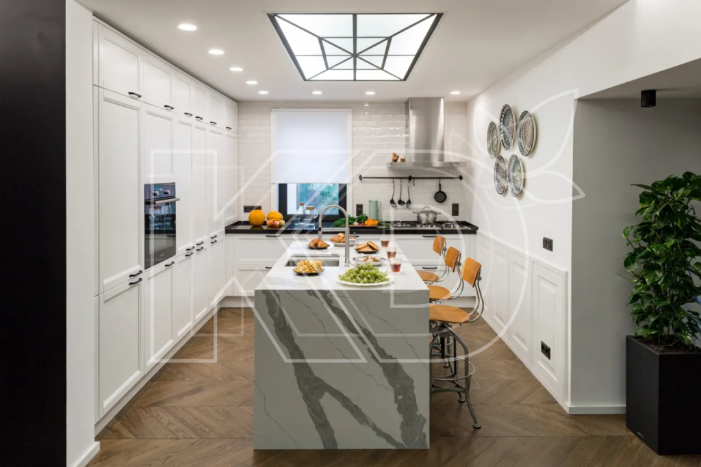 Островная планировка обычно используется в просторных помещениях – квартирах-студиях, загородных домах и кухнях-гостиных. С помощью острова можно визуально отделить зону готовки от места для отдыха. Также он подходит для следующих целей: