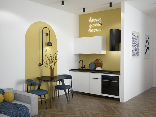 Home sweet home начинается с кухни. Даже если она компактная, пусть она будет продуманной, качественной и эстетичной. «Кухонный Двор» представляет серию готовых кухонь-сетов Уна.