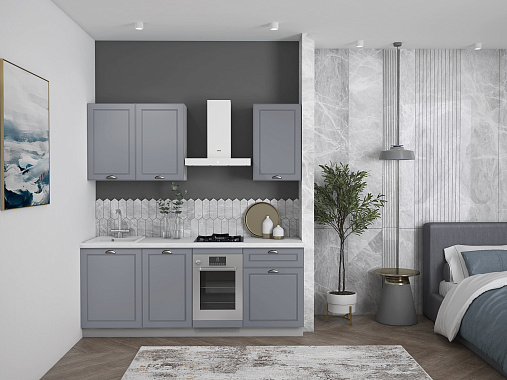 Кухня Лея — компактное готовое решение в классическом стиле, сочетающее элегантный дизайн и абсолютную функциональность. Изящные фасады с рамочной фрезеровкой придают ей нотку утончённости, а до мелочей продуманная конструкция делает её идеальной для небольшого помещения, в котором каждый сантиметр должен быть полезным.