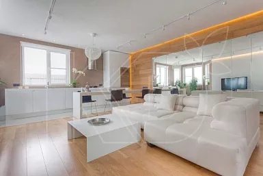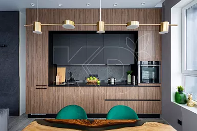 Для просторной квартиры-студии идеальным решением станет островная модель кухни. Гарнитур с такой планировкой подходит для зонирования помещения, потому что остров способен визуально отделить кухню от остального пространства.