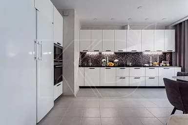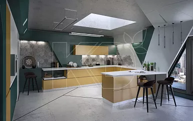 Планировка, при которой модули располагаются в виде буквы «П» вдоль трех смежных стен, обычно используется в больших помещениях. Подобное расположение считается одним из наиболее эргономичных, потому что позволяет придерживаться принципа рабочего треугольника. Холодильник, плита и мойка размещаются на одинаковом друг от друга расстоянии.