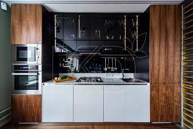 Барная стойка может использоваться в качестве дополнительной рабочей поверхности или обеденного стола. Другой плюс такой конструкции заключается в том, что она может использоваться для зонирования пространства.
