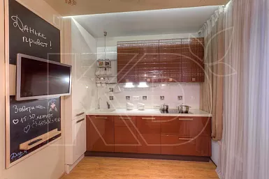 Данная планировка подходит для небольших комнат. Модули такого гарнитура займут место возле одной стены, не перегружая помещение. У прямой конфигурации кухни есть и другие преимущества: